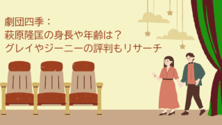 劇団四季俳優:男性 劇団四季:萩原隆匡の身長や年齢は?グレイやジーニーの評判もリサーチ グレイやジーニー、ボビーなど主要な役で大活躍している、劇団四季俳優の萩原隆匡(はぎわらたかまさ)さん。立ち姿はスラっとしており、踊ればキレッキレのダンス、歌えば魅惑のテノールボイスに間合いの取り方バツグンの演技力。どんな経歴の持ち主なのか、... 2025.10.16 劇団四季俳優:男性